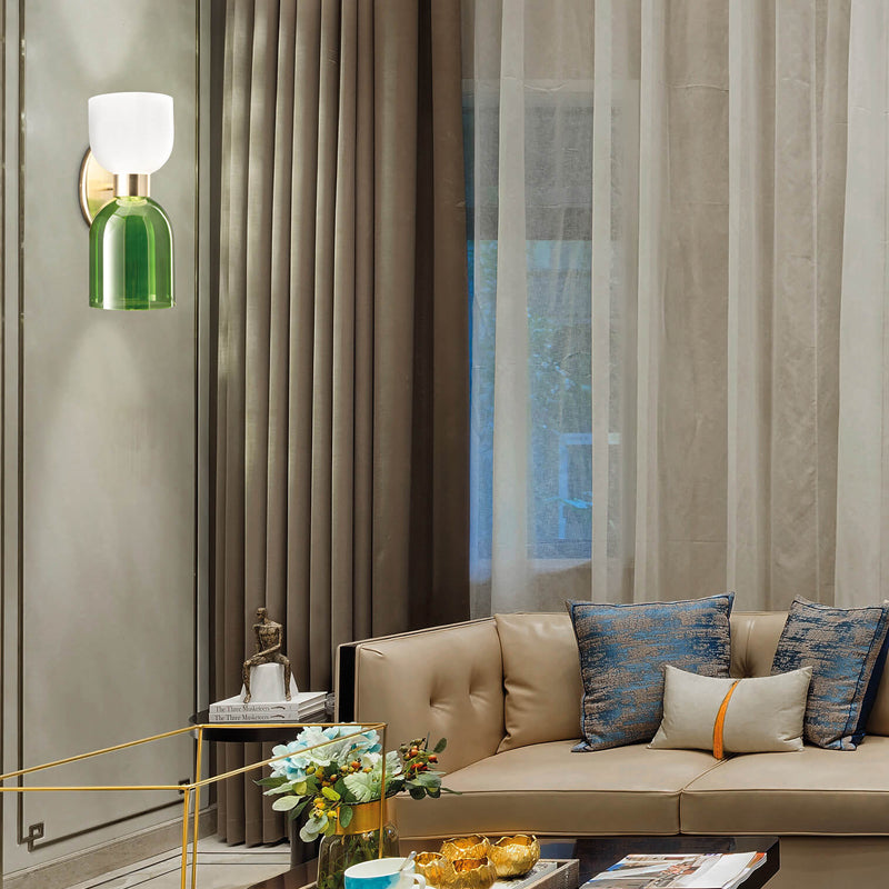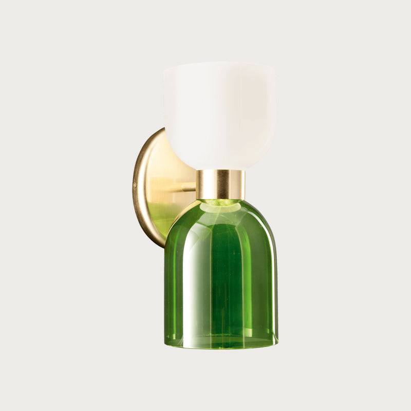 The Caterina Wall Light is an exquisite blend of elegance and modern design. Featuring a brushed gold wall mount, it showcases a vibrant coloured glass shade complemented by a soft opal glass diffuser, providing warm and inviting illumination. Perfect for entryways, bedside placement, or as a stylish accent in any contemporary space.