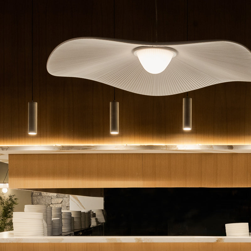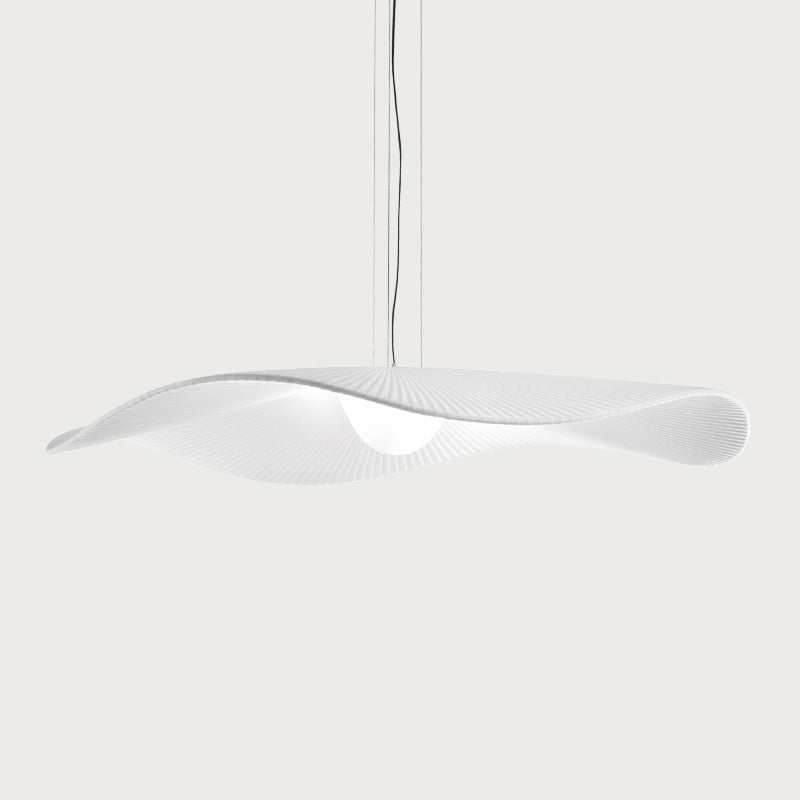 The Mediterrània lamp is an ode to the Mediterranean. A soft wave of ribbon that pays homage to the light. With dedicated LED and poly-carbonate diffuser the Mediterrania is available in cream or white ribbon options and (2) sizes. Made and designed in Barcelona by Alex Fernández-Camps.