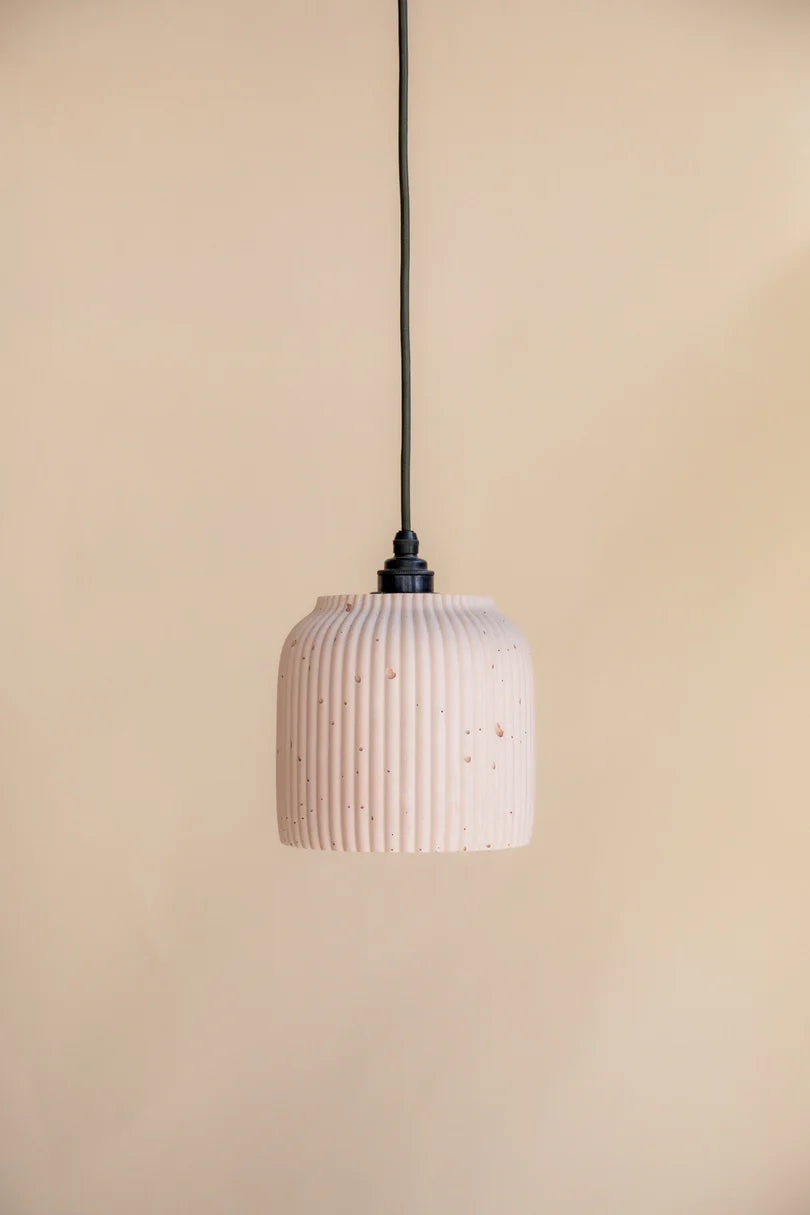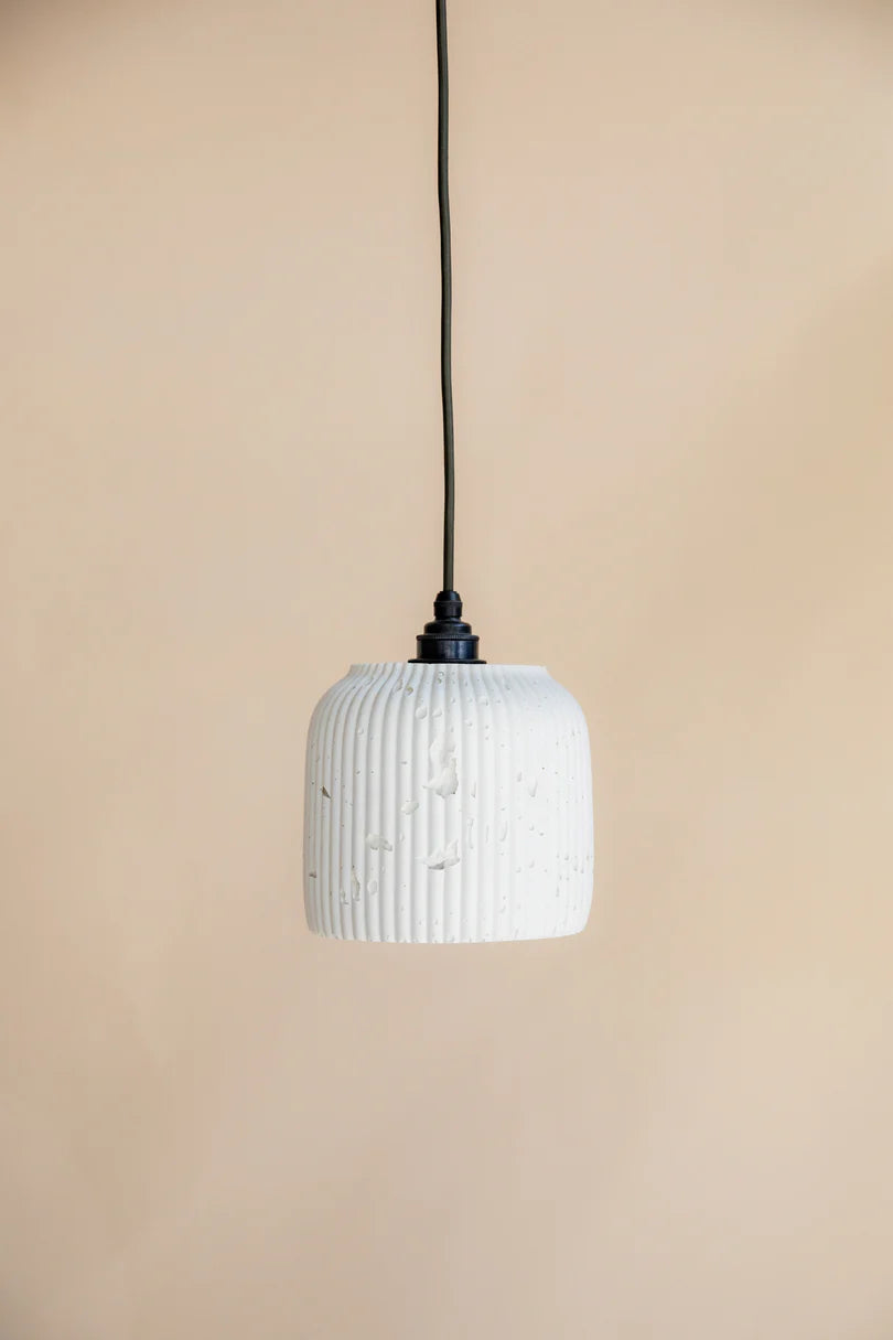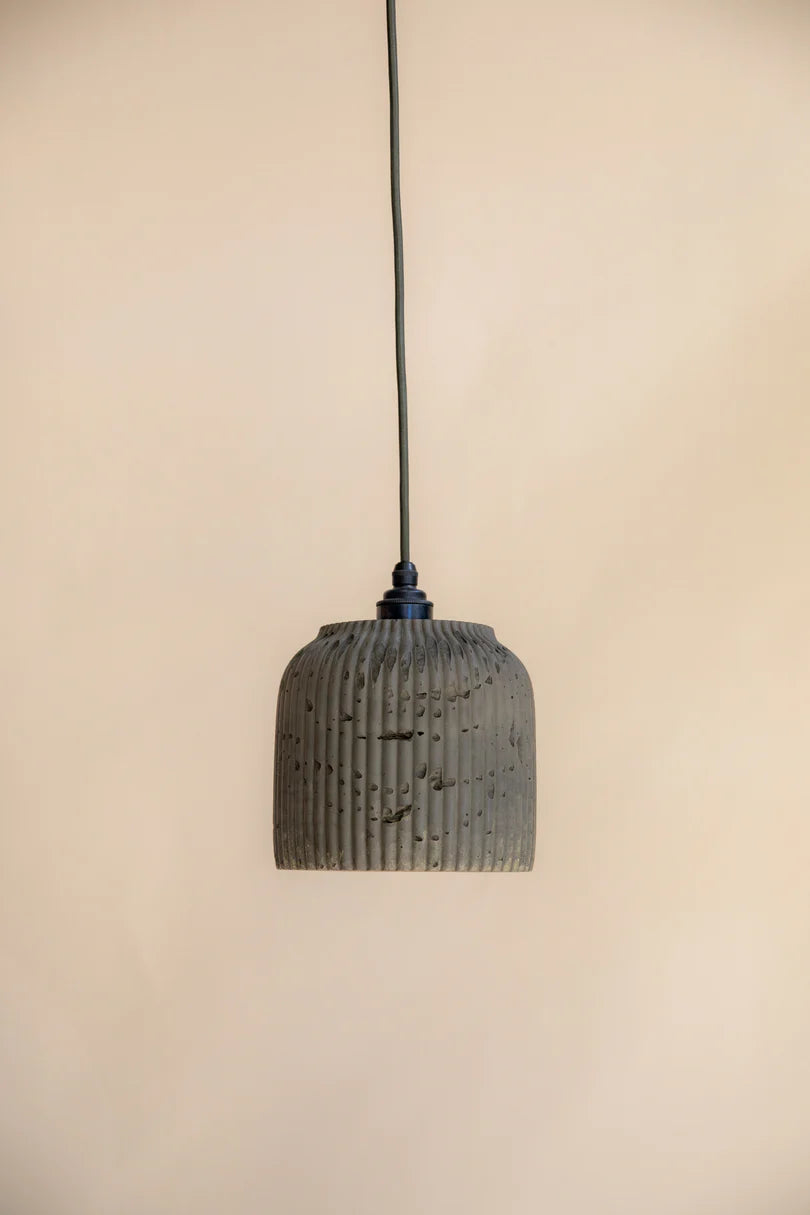 The Banc Pendant blends together refined geometry and raw materiality. Its clean, vertical form is balanced by a richly textured ribbed surface, achieved through hand-poured concrete techniques that highlight natural tonal variation. With its elemental charm and architectural simplicity, this pendant light lends understated character to interiors both modern and grounded.