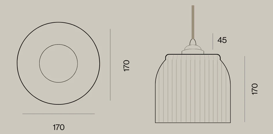 Dimensions: Shade 170mm width/ 170mm length. Pendant Connection 45mm